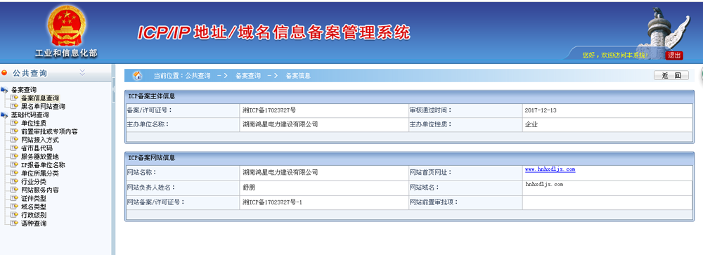 公司通過提交相關的資質證件,網站已成功獲批湖南通信管理局備案,備案號為:湘ICP備17023727號-1: